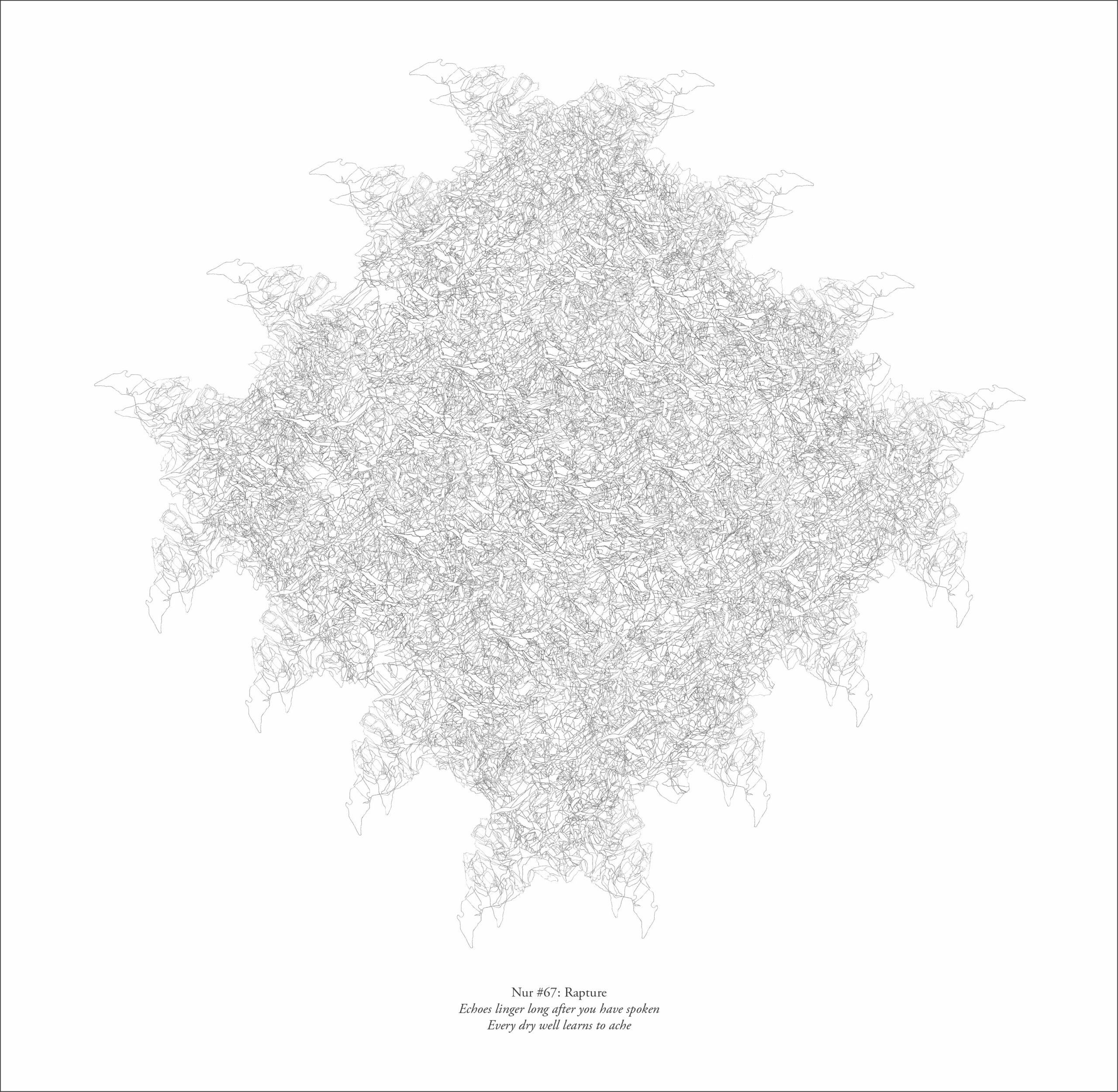 Hayakal al-Nur is an open-ended hermeneutics of light: a serial ontological drawing and writing project born of intimate metaphysical inquiry. The works emerge as living geometries of intelligence, conscious structures transmitting vibrational patterns of origin encoded in form. They are portals of divine self-disclosure (tajalli), receiving perception as spaces of meditation and revelation.